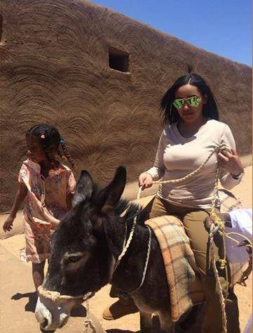 حيث أظهرت الصور وهي تمتطي حمار وترتدي ملابس أثارت اهتمام الرواد والذين سارعوا علي نشر تعليقاتهم.