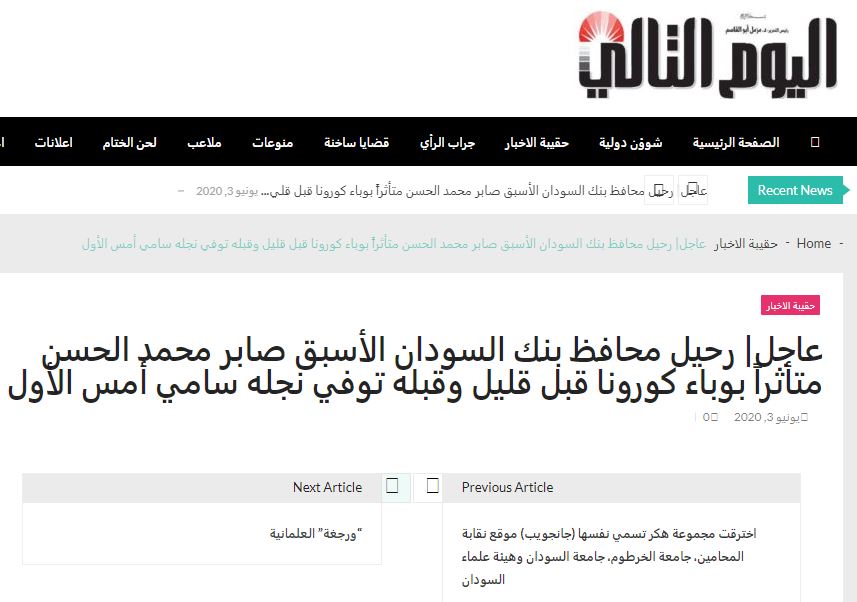 نقلاً عن مصادر صحيفة ، نشرت الشبكة خبر وفاة السيد صابر محمد الحسن ، ونعتذر عن الخطأ ونتمنى للسيد صابر محمد الحسن عاجل الشفاء .
