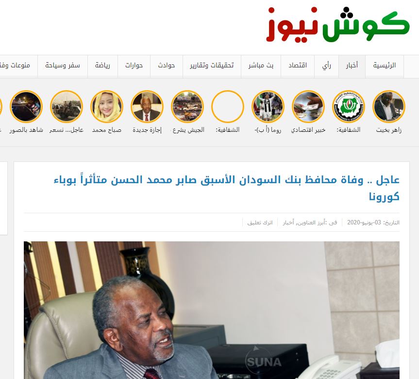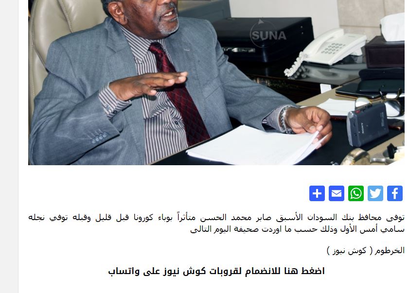 نفي خبر- وفاة محافظ بنك السودان الأسبق صابر محمد الحسن بفايروس كورونا