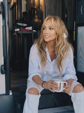 ونشرت جينيفر لوبيز مجموعة صور لها عبر حسابها الرسمي على “انستجرام”، ظهرت خلالها وهي ترتدي قميصاً أبيض، وبنطلون بنفس اللون، وتركت شعرها منسدلاً مع وردة بيضاء، وعلقت: “حديث القهوة”.