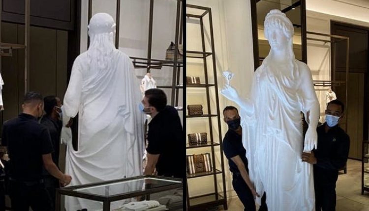 شاهد بالصور .. إزالة صنم الآلهة فينوس (إله الحب) من أحد المحلات التجارية في الكويت بعد ضجة واسعة
