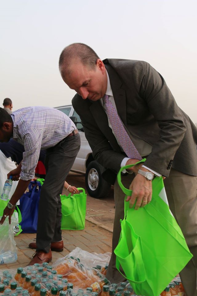 Charge d ‘Affaires a.i. Benjamin Moeling and several other U.S. Embassy staff handed out on Thursday several hundred “Break your fast bags” to passersby in Al-Ingaz area and Al-Azhari road. The step comes within the embassy’s commitment to engaging with the Sudanese people and sharing the Ramadan spirit with the local community.