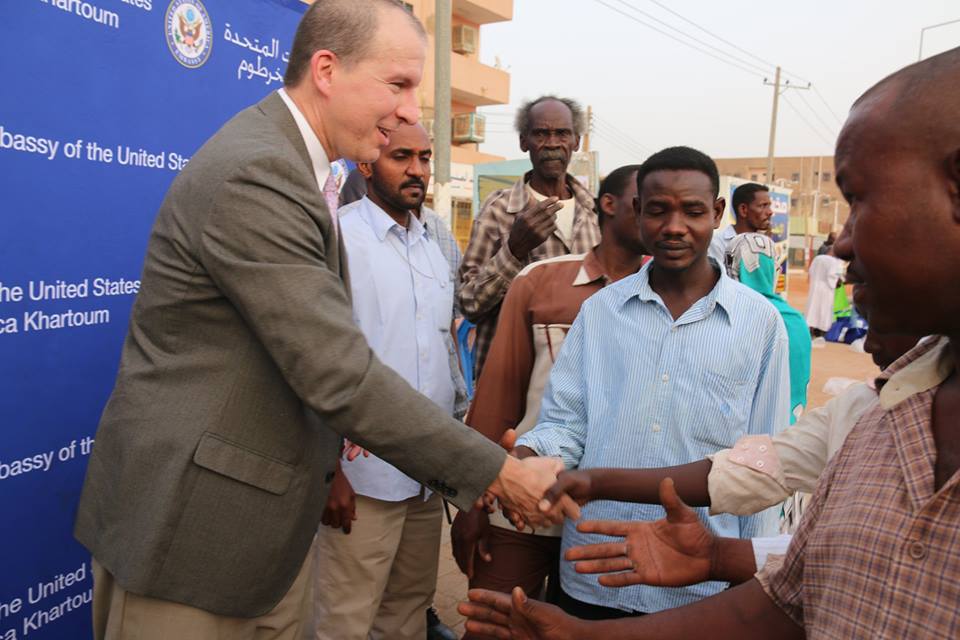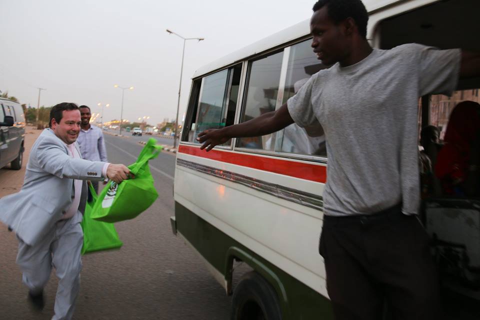 بالصور .. السفير الأمريكي يوزع افطار رمضان بشوارع الخرطوم ..وساخرون : خليه يوزع “جوازات و لوتري”