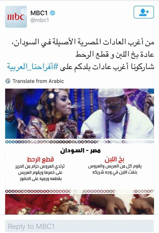 أعادت قناة (mbc1) نشر الصورة التي تناولت بعض العادات السودانية ووصفتها بأنها عادات مصرية انتقلت للسودان، وقامت القناة بتعديل الصورة بشكل أشبه بالاعتذار بتراجعها في التعديل للوصف بقولها “بخ اللبن وقطع الرحط من العادات السودانية الأصيلة في الزواج”..