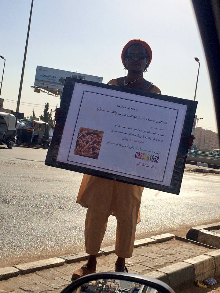سودافاكس – الخرطوم – رصدت كاميرا رواد مواقع التواصل الاجتماعي حدثاً غريباً حيث اقدم مواطن سوداني على حمل لافتة باحد الطرق الرئيسية بالعاصمة السودانية الخرطوم ، لفتت انتباه جميع مستخدمي الطريق .