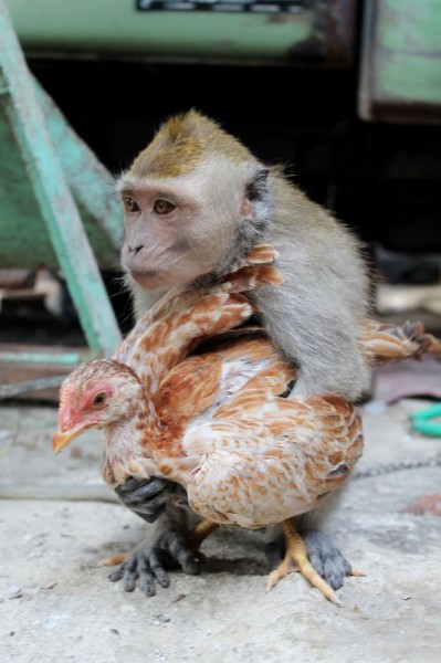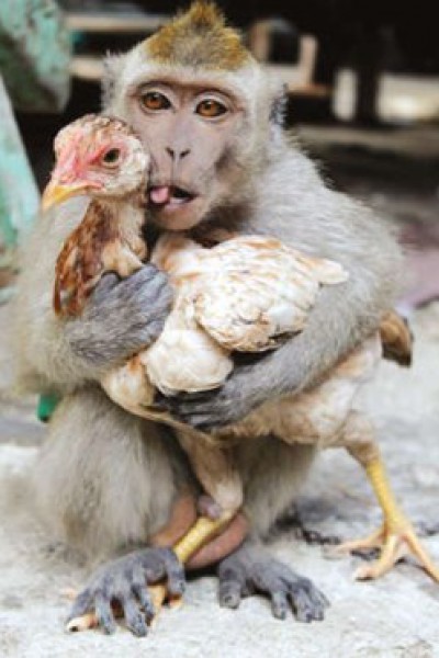 من غرائب الطبيعة .. قرد يقع في حب دجاجة وصور حميمية